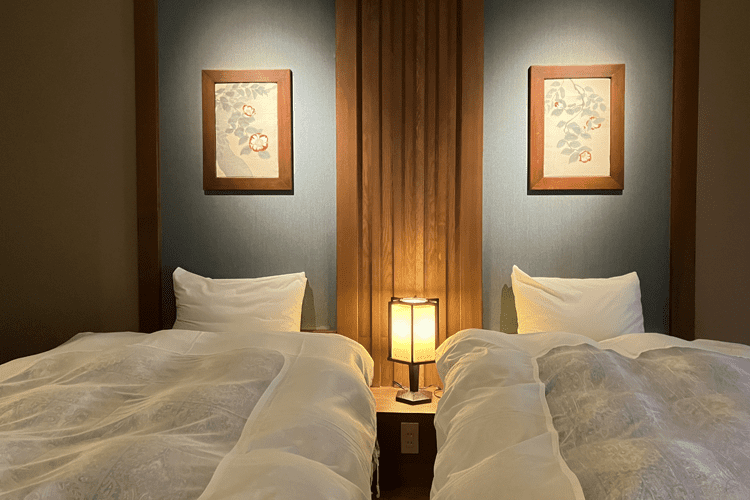 Japanese Style room 12 tatami mat, twin bedroom, unified in a Japanese modern style. It includes a shower booth and an washtoilet.